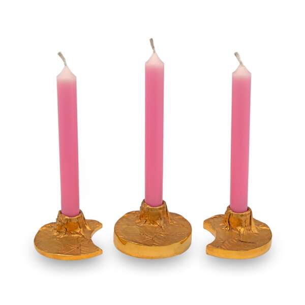 Set of 3 candle holders in bronze gold plated with a "crushed paper" texture appearance